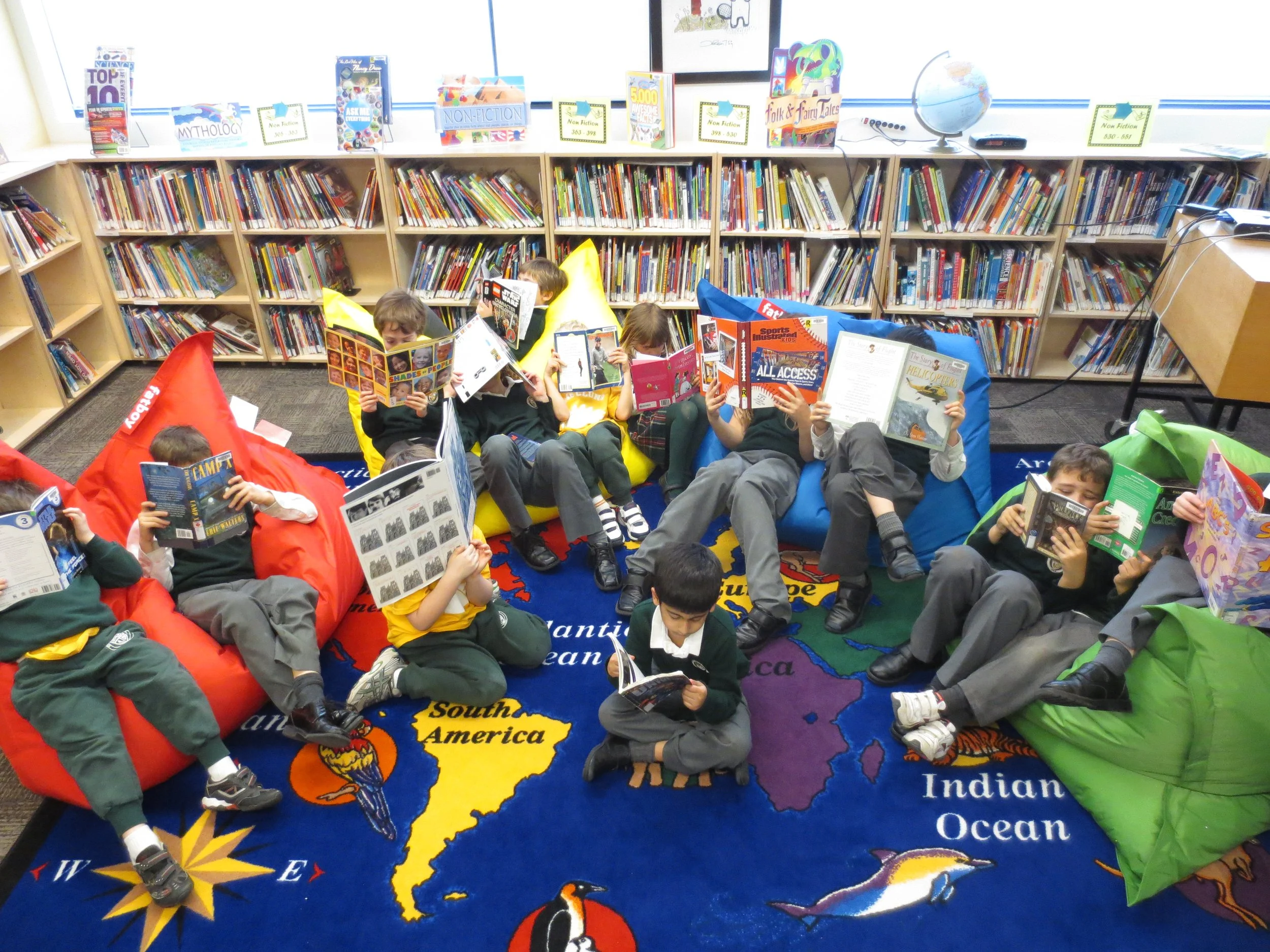 A new library that is bright and has comfy reading nooks for students to curl up with a book and imagine, newly positioned to be located at the back of the school.